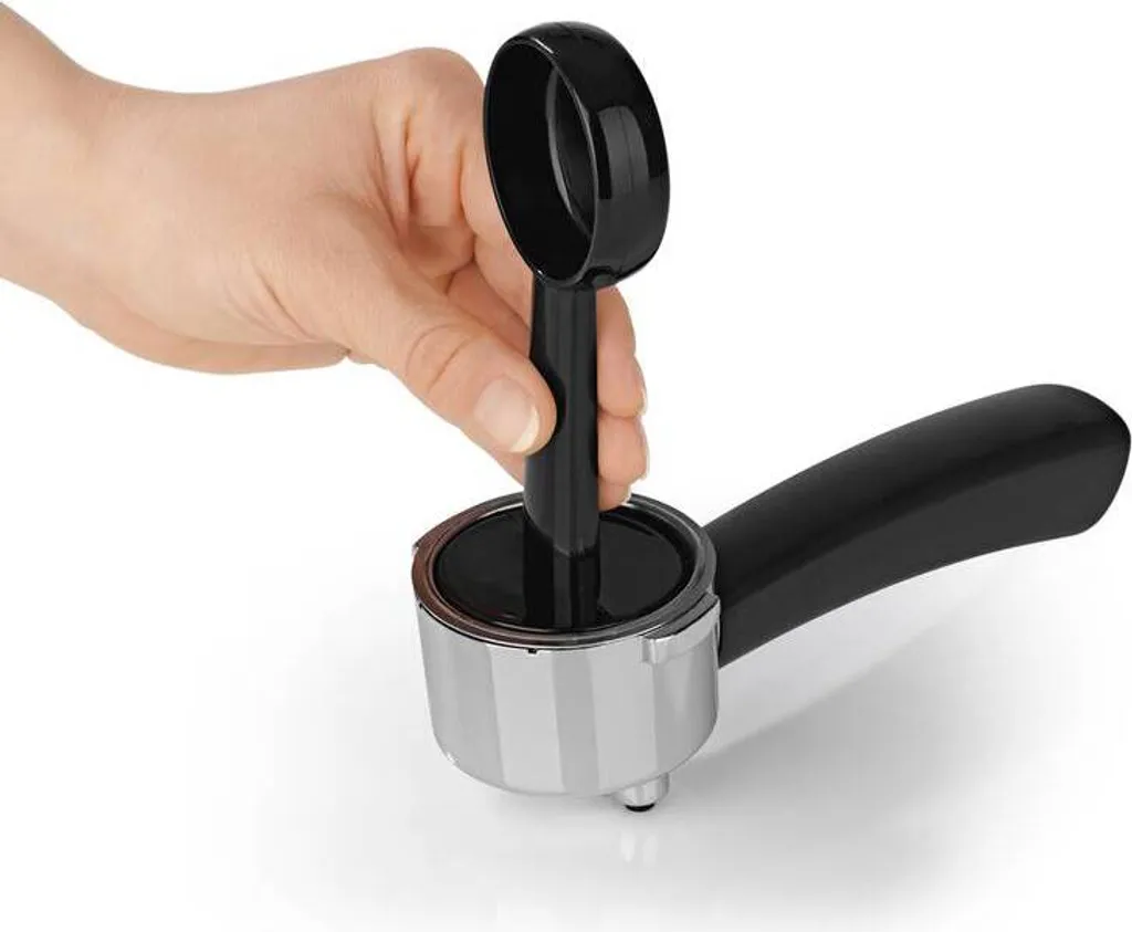 - Lieferumfang: 1x Espressomaschine, 1x Wassertank mit Deckel, 1x Milchtank inkl. Abdeckung, 1x Siebträger, 1x Sieb, klein (1 Tasse Espresso), 1x Sieb, groß (2 Tassen Espresso), 1x Tropfschale inkl. Abdeckung, 1x Dosierlöffel / Tamper