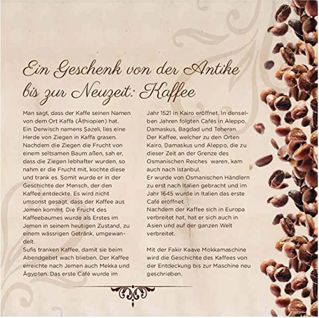 - Die Fakir Kaave Mokkamaschine bereitet Ihren Mokka zu, wie man es bereits seit dem 15. Jahrhundert in den türkischen Kulturen praktiziert.