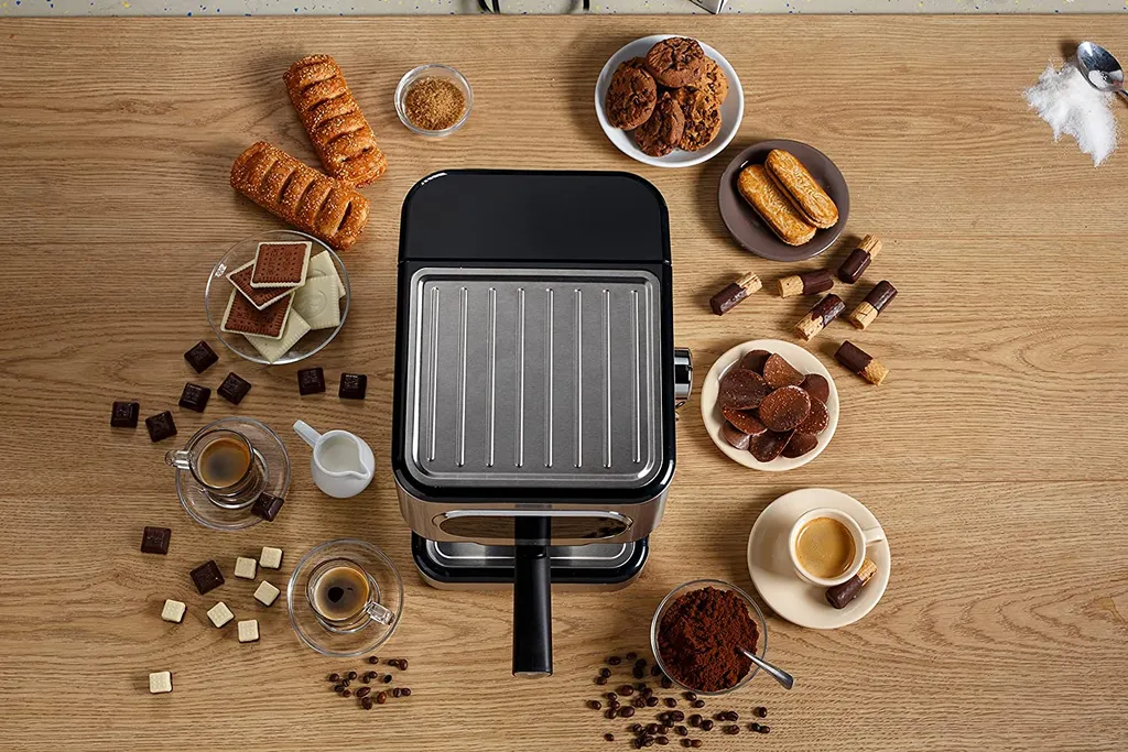 Die Gorenje ESCM 15 DBK Espressomaschine im edlen Design, kommt mit professionellem Siebträger. Die Espressomaschine überzeugt mit 15 Bar Druck, 1100 Watt und 1,5 Liter Wassertank. Mit dem professionellem einstellbaren Milchaufschäumer für verführerisch cremigen Capuccino haben Sie auch die maximale Freiheit und können heißen Kakao oder auch Tee damit zu bereiten.