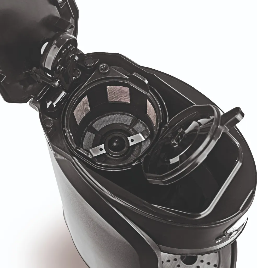 Dank des 24-Stunden-Timers startet die kompakte Filterkaffeemaschine zum gewünschten Zeitpunkt mit der Zubereitung und lockt Sie morgens mit dem aromatischen Duft von frisch gebrühtem Kaffee aus dem Bett. Programmierung abends vergessen? Kein Problem, der gesamte Brühvorgang dauert gerade mal 5 Minuten – so viel Zeit muss sein! Wahlweise kann fertiges Kaffeemehl verwendet werden oder Sie lassen die Bohnen ganz frisch mahlen.