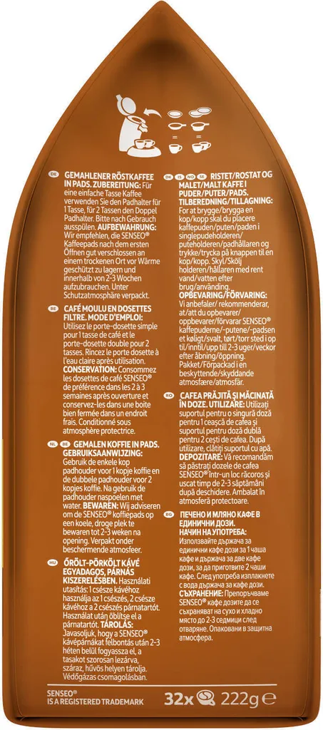 Nettogewicht/Packungsinhalt: 222 g, 32 Pads à ca. 6,9 g