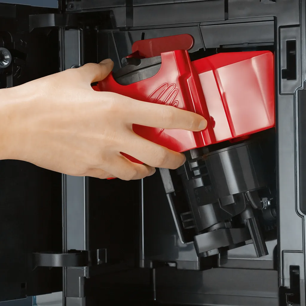 Das Zusammenspiel von langlebigem Keramik-Mahlwerk, intelligentem Durchlauferhitzer, Wasserpumpe und Hightech-Brüheinheit schafft technische Perfektion von der Bohne bis zur Tasse.